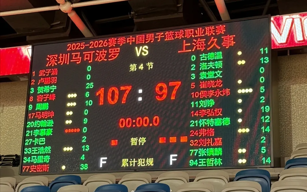 末节决战,上海队进攻火力骤降,单节得分首次跌破20分,陷入得分荒。在84-92落后的不利局面下,上海队凭借顽强意志逐步追分,一度将分差缩小至92-94,仅差2分,看到逆转希望。但深圳队迅速稳住阵脚,多点开花打出一波13-2的致命攻势,尤其是贺希宁连续得分撕开上海队防线,分差再度被拉开至13分,上海队以94-107陷入绝境。尽管弗格随后再中三分,但为时已晚,最终上海队97-107不敌深圳队,9连胜戛然而止。