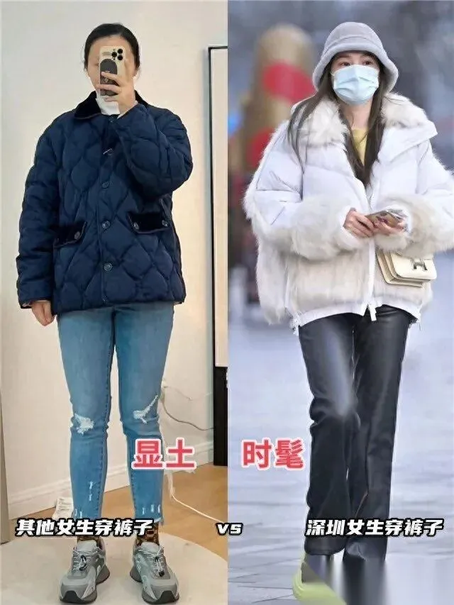 深圳女生在穿羽绒服时,下半身的首选永远是修身的直筒裤、小黑裤,是鲨鱼裤。