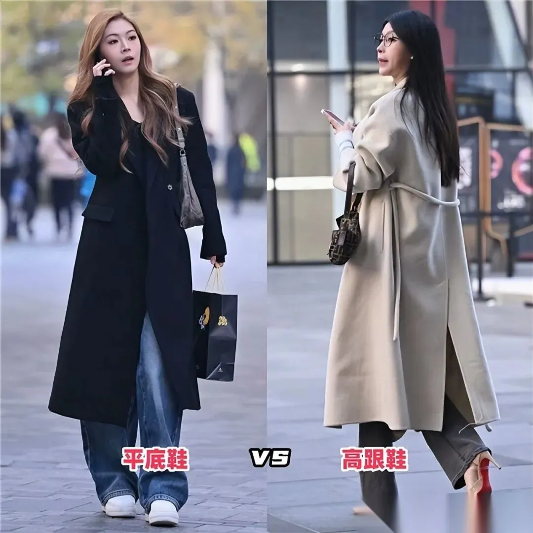 厚重的雪地靴、笨拙的老爹鞋,搭配上本就蓬松的羽绒服,简直是把你的身高“压缩”到了极致,让你秒变一米五。