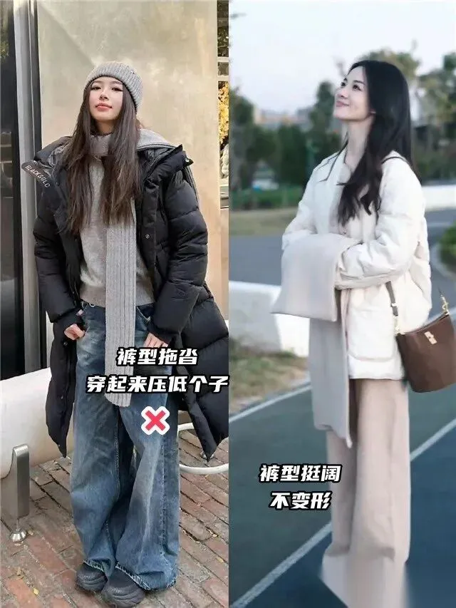 很多姐妹还停留在“哪里胖就遮哪里”的旧观念里,以为穿上宽松的羽绒服,再配一条阔腿裤就能万事大吉。