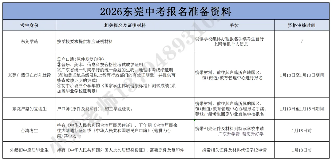 东莞中考报名时间确定:2026年1月13日至1月20日。一起来看看不同考生如何报名?