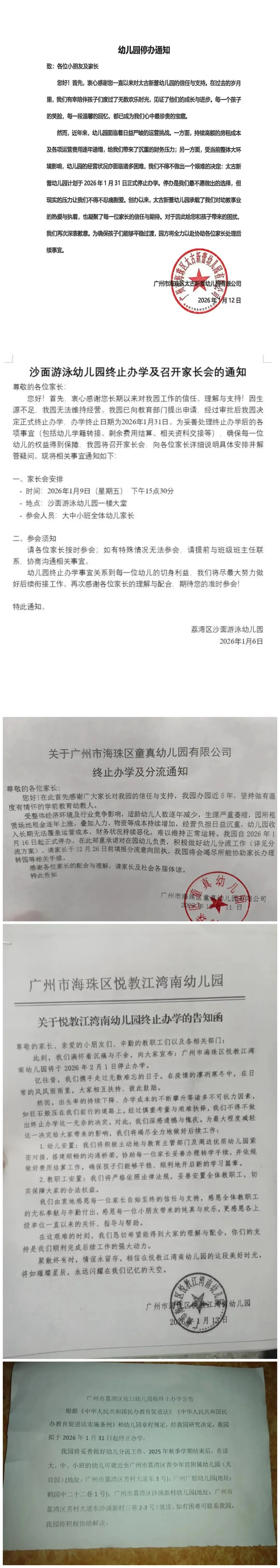 广州这两所幼儿园终止办学