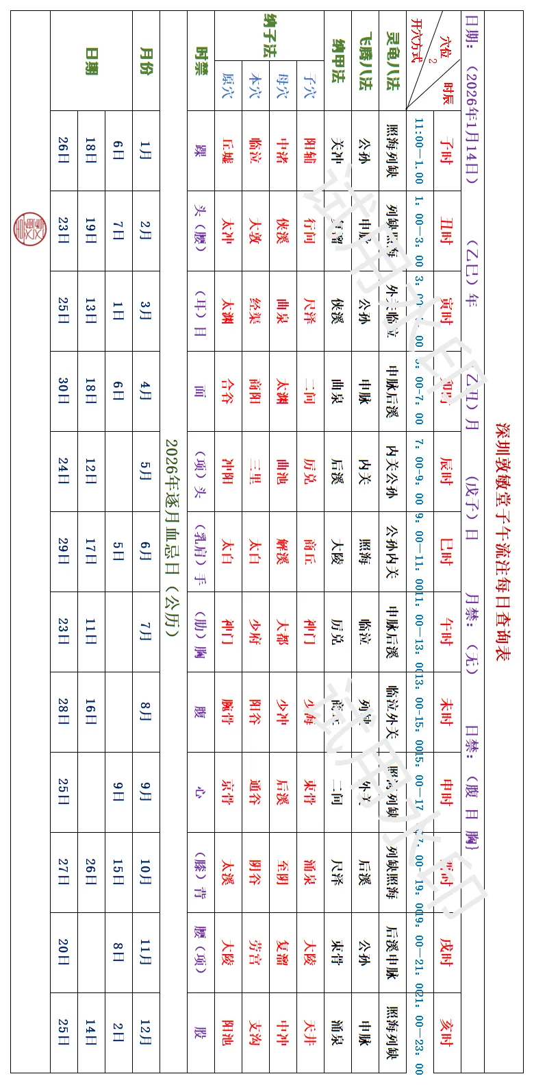 深圳敦敏堂《子午流注:今日开穴》 2026 1月14日