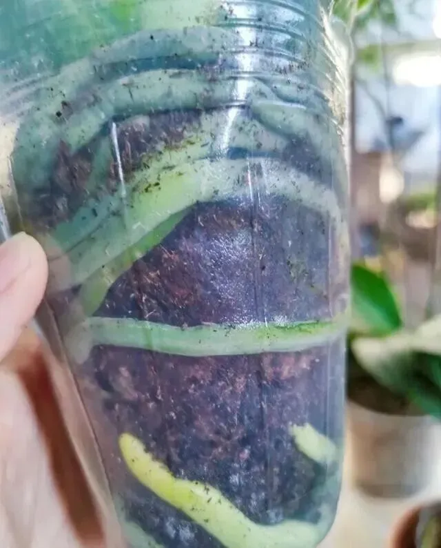 看根透明盆最直观,根发白干瘪不怕,怕的是黑烂糊掉、有臭味。
