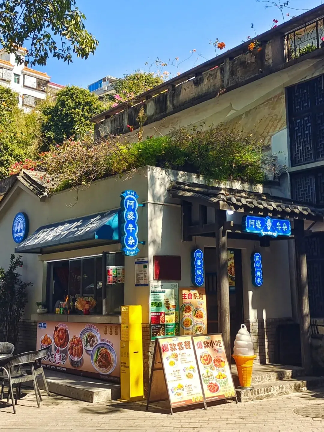 走进甘坑古镇的临街门楼,城市的喧嚣与嘈杂,立刻被隔绝,仿佛时空穿越了一样。街上游人很少,古朴的青石板路蜿蜒延伸,两边的店铺、餐馆没有热闹的叫卖声,店家只是操持着店里的活计,笑脸相迎每一个探访者。