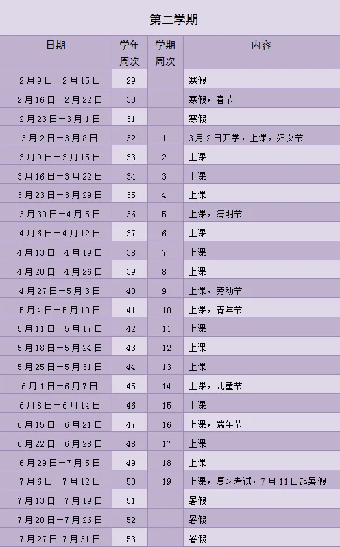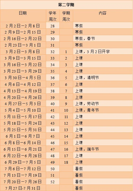 春季学期开学:2026年3月2日