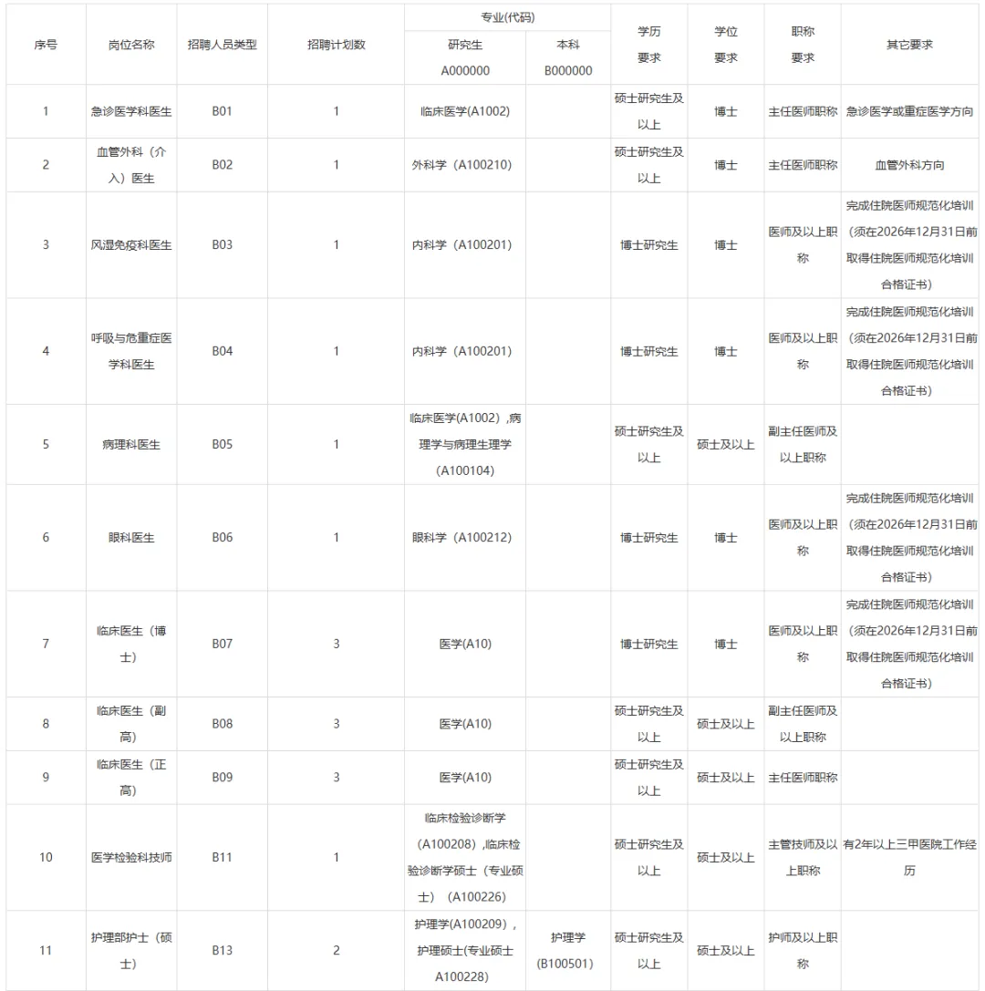 5.应聘医生岗位的应聘者均需具备住院医师规范化培训证书(2026年应届毕业生需本年度内提供)。
