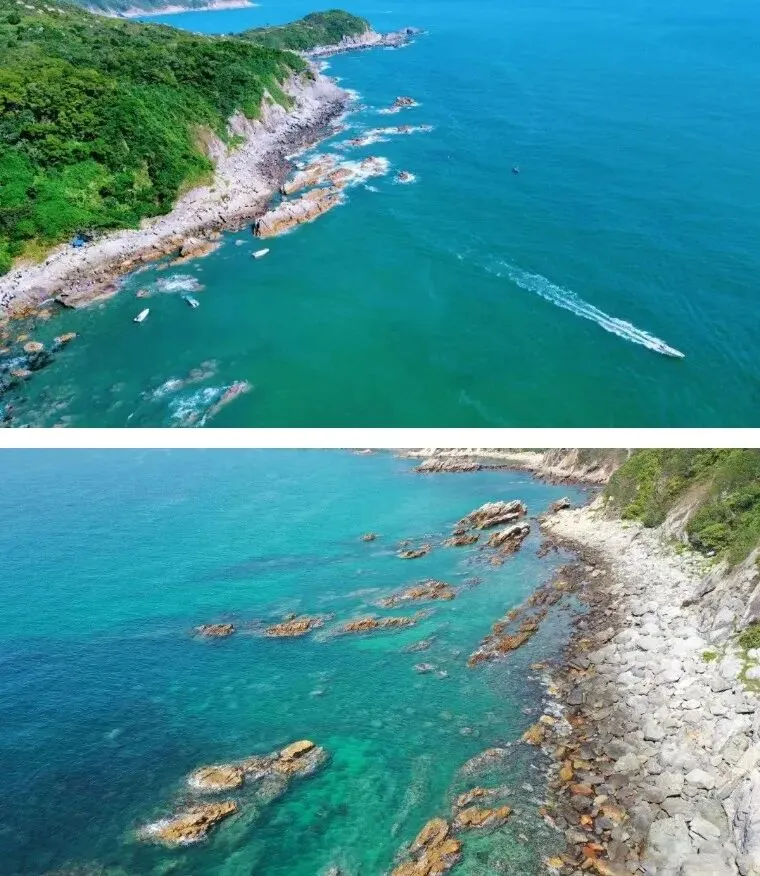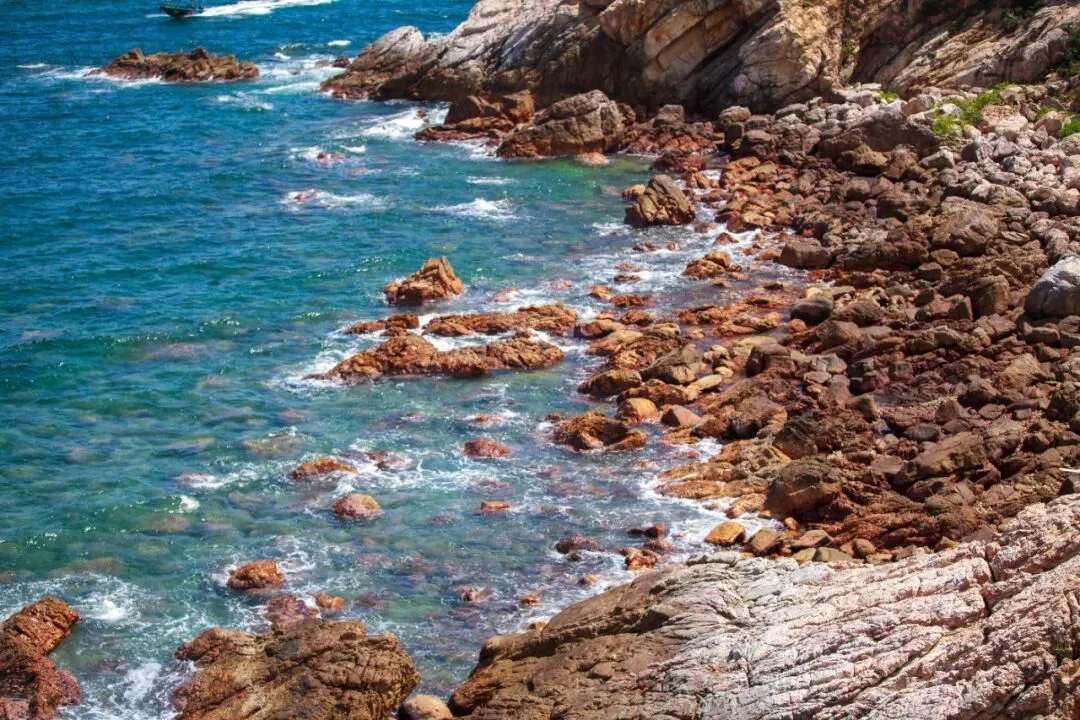 13:00 沿海岸线攀越山崖、踏过礁石,向西冲挺进(中途可坐快艇到西冲,费用自付 )徒步人多的时候可能会比较缓慢,大家要注意安全并礼让,团友们之间尽可能互相帮忙度过攀登的难点。