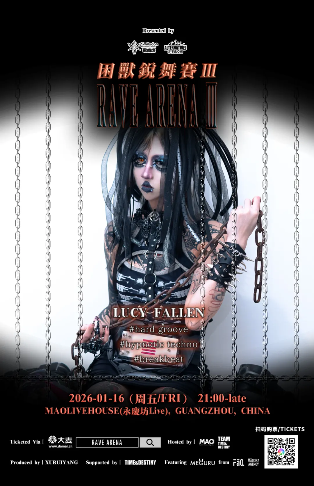 Lucy Fallen是从未来赛博世界坠落到此的机械姬。坠落前的她早已是一位音乐传播的人工智能,坠落后无法摆脱刻入DNA中音乐使命的她继续出没在夜里地下具乐部里的人群中。