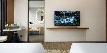 游览【顺德华侨城欢乐海岸PLUS】(车程约30分钟,游览约90分钟)开创性地将商业街区、主题公园、文化体验以及生态湿地融为一体。此外,欢乐海岸PLUS将美食、龙舟、永春、香云纱、曲艺、状元、广绣等广府传统文化IP融入曲水湾,打造顺德版“清明上河图”;立足顺德“世界美食之都”美誉,以“寻味顺德”为最大亮点,吸引超70个美食商家进驻。