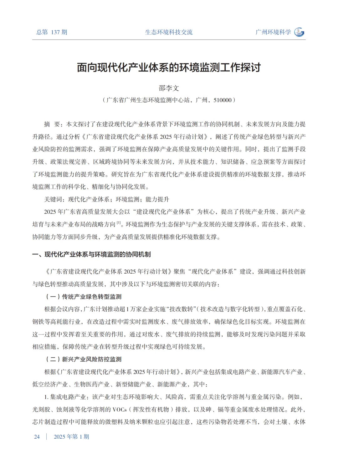 >《广州环境科学》2025年