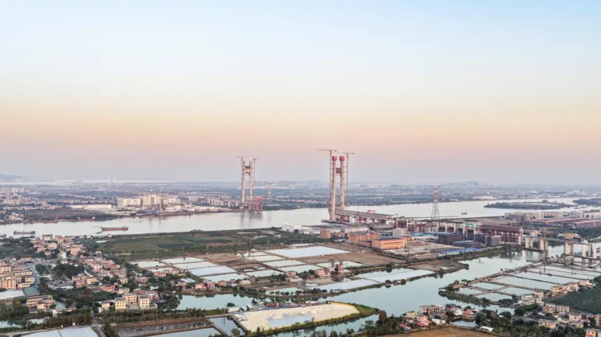 据悉,洪奇沥水道公铁大桥由厦深铁路广东有限公司建设管理、中铁四院设计、中铁大桥局承建,是深江铁路全线的控制性工程之一。该桥采用双塔双索面半漂浮体系,集“一新”“四大”“五难”等技术特点于一身,施工难度与技术含量位居同类工程前列。