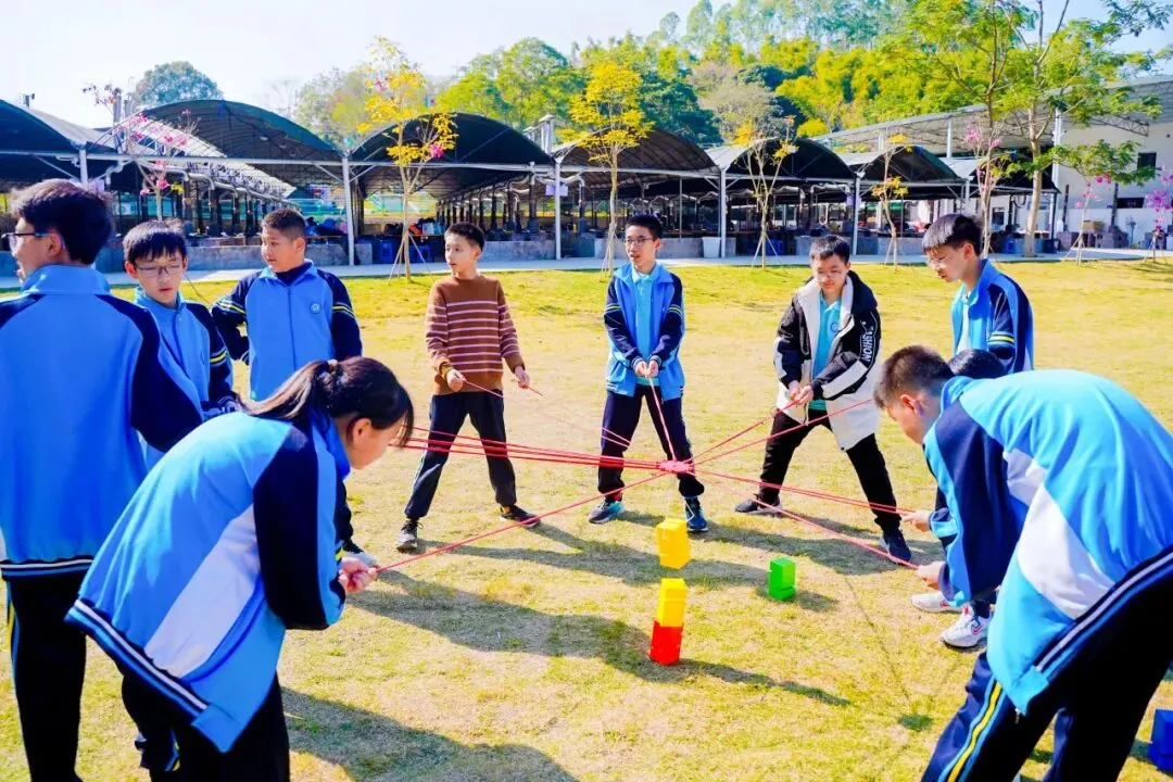 这是一场充满挑战的团队比拼。当团队成功完成挑战的那一刻,同学们击掌相拥,欢呼雀跃,深刻体会到了团队协作的强大力量,也增强了集体荣誉感。