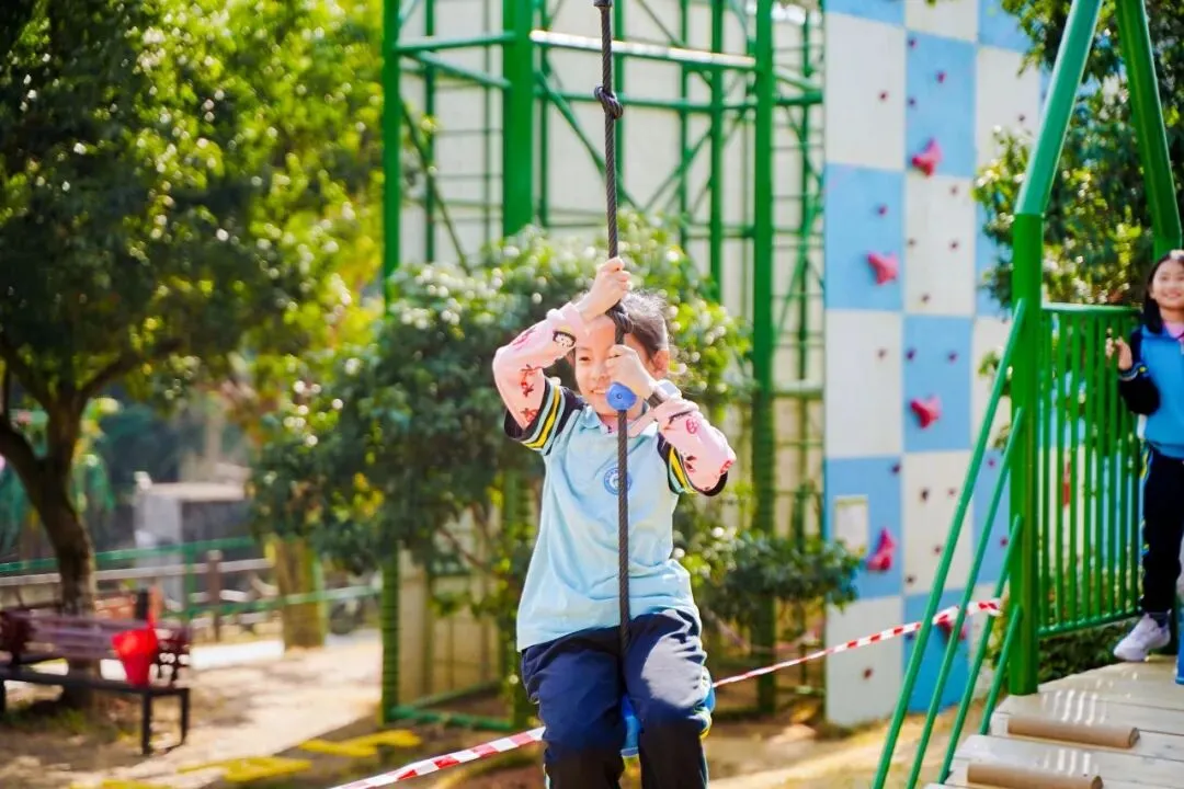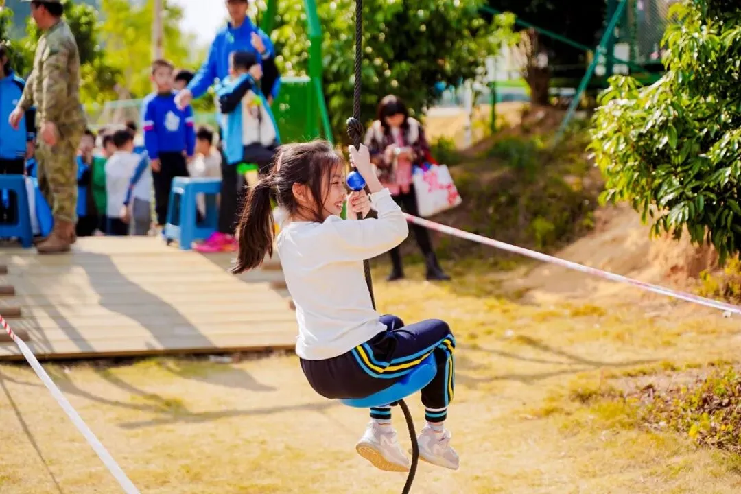 同学们既紧张又期待,双手紧紧握住绳索,深吸一口气,鼓足勇气纵身跃出。每一次飞跃都是对自我勇气的突破,也让同学们学会了直面挑战、勇敢前行。