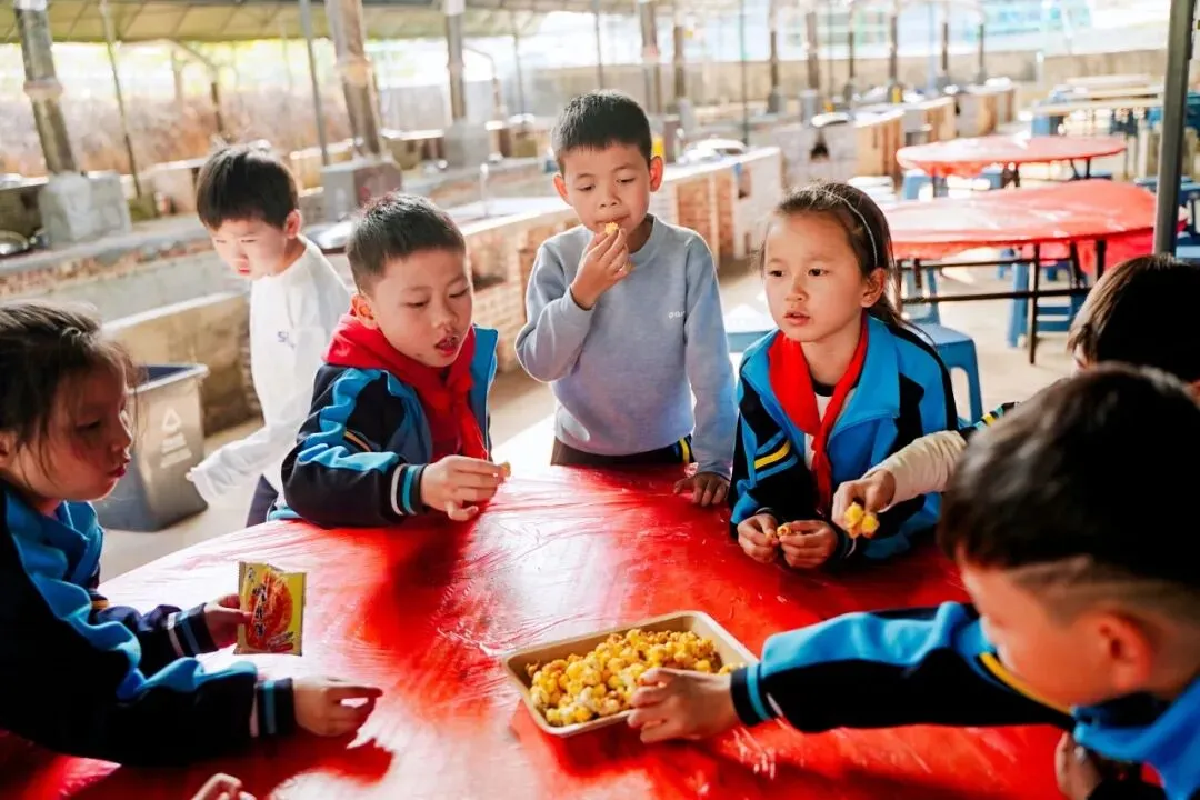 铁锅爆米花环节,充满了浓浓的烟火气与童年乐趣。同学们围在铁锅旁,目光紧紧盯着锅盖,期待着爆米花出锅的瞬间。同学们在动手实践中感受劳动的快乐,品味着付出后的甜蜜回报。