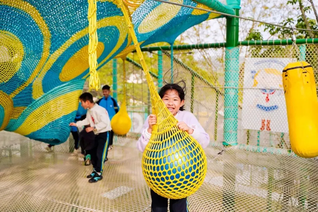 茂密树林间的魔网,如一张巨大的绿色秘境,吸引着同学们的目光。大家迫不及待地钻进魔网,在上面肆意翻滚、跳跃、追逐,清脆的笑声在林间回荡。孩子们在嬉戏中锻炼了平衡能力与协调能力,更感受着与自然相拥的惬意。