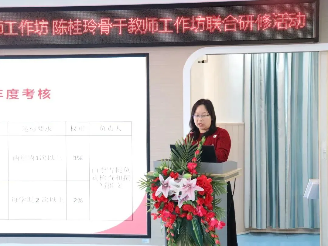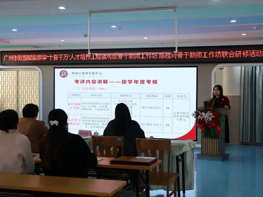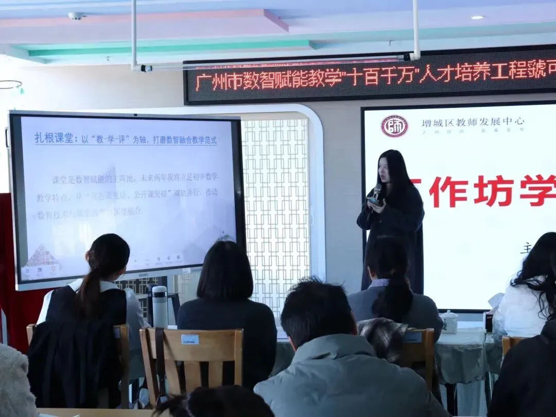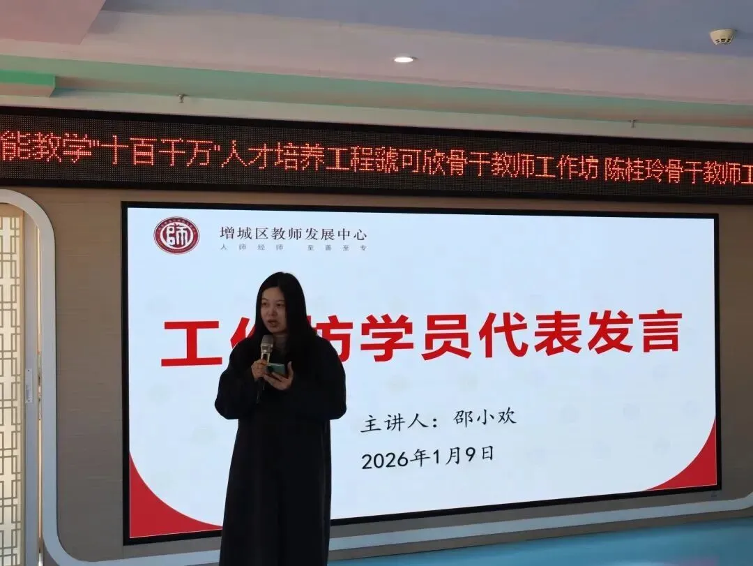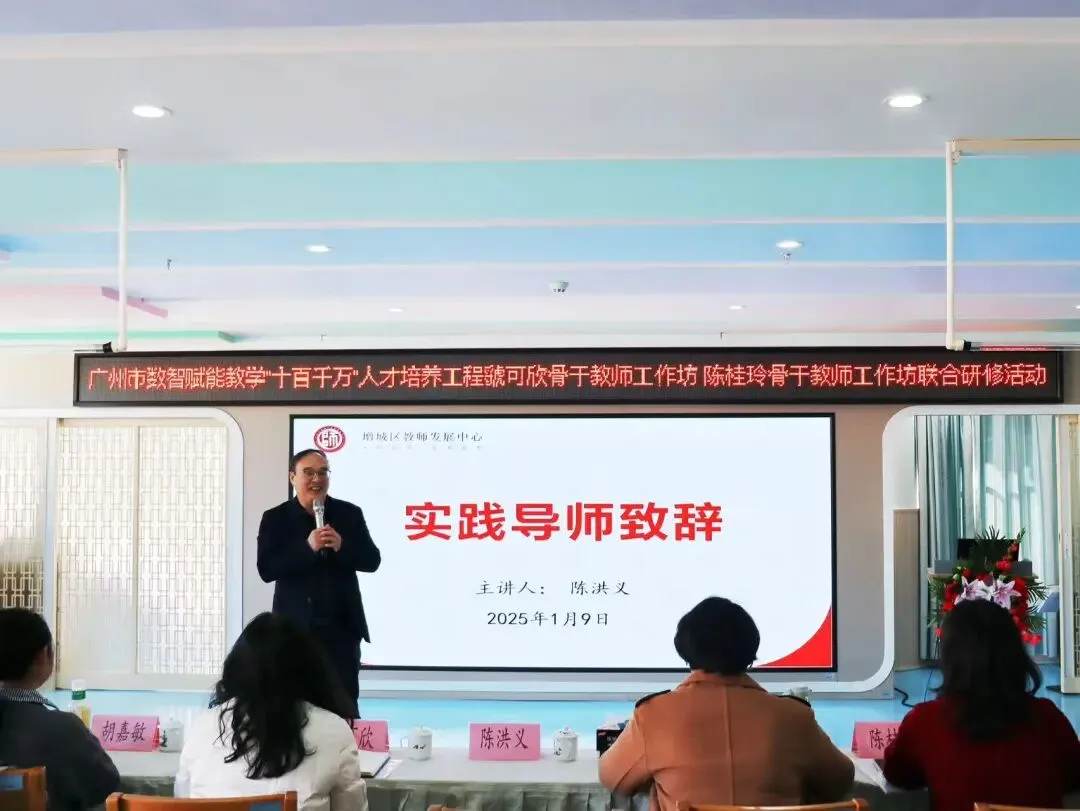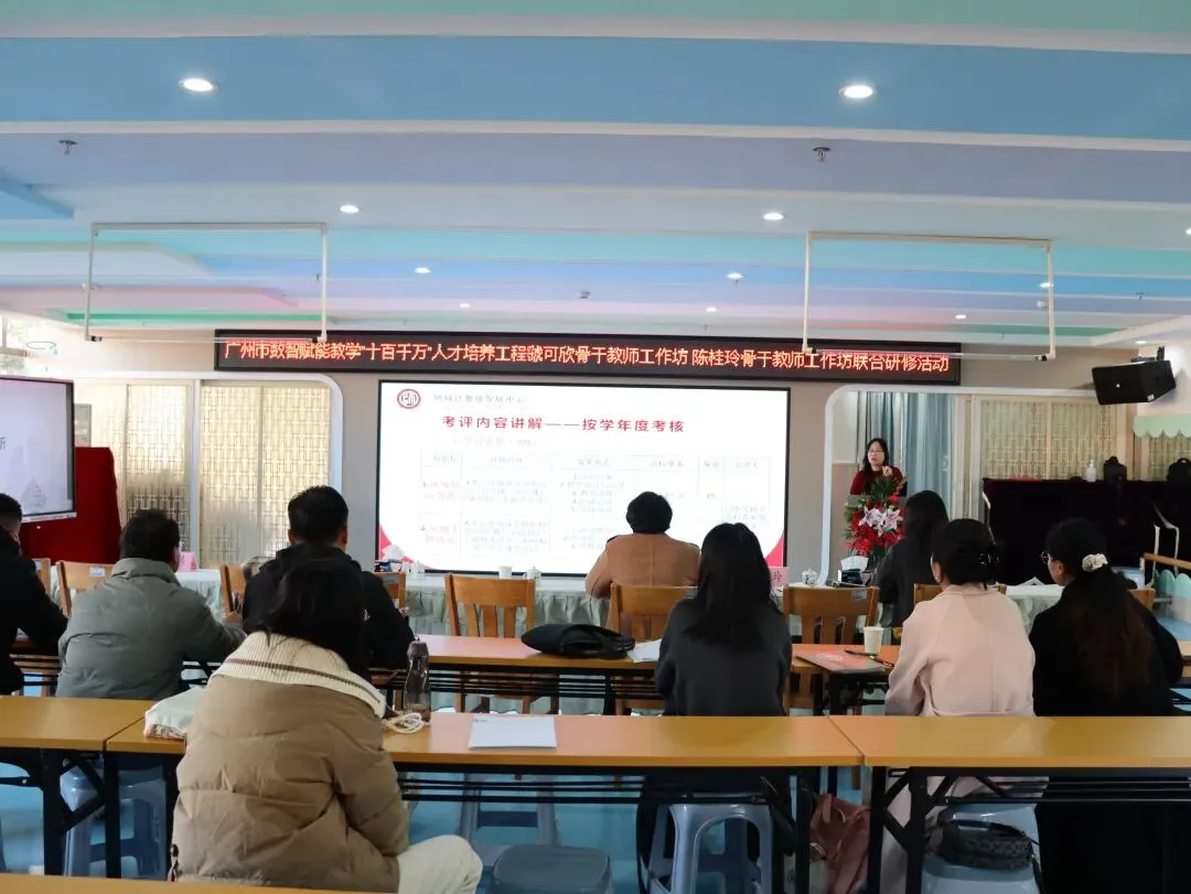 2026年1月9日,广州市数智赋能教学“十百千万”人才培养工程虢可欣骨干教师工作坊、陈桂玲骨干教师工作坊联合研修活动在增城区荔城街中心幼儿园顺利举行。活动特邀增城区教师发展中心陈宗兰部长、陈洪义教授,海珠区海鸥幼儿园胡嘉敏老师,工作坊主持人陈桂玲老师、虢可欣老师,荔城街中心幼儿园尹小玉园长及两坊全体学员共同参与。