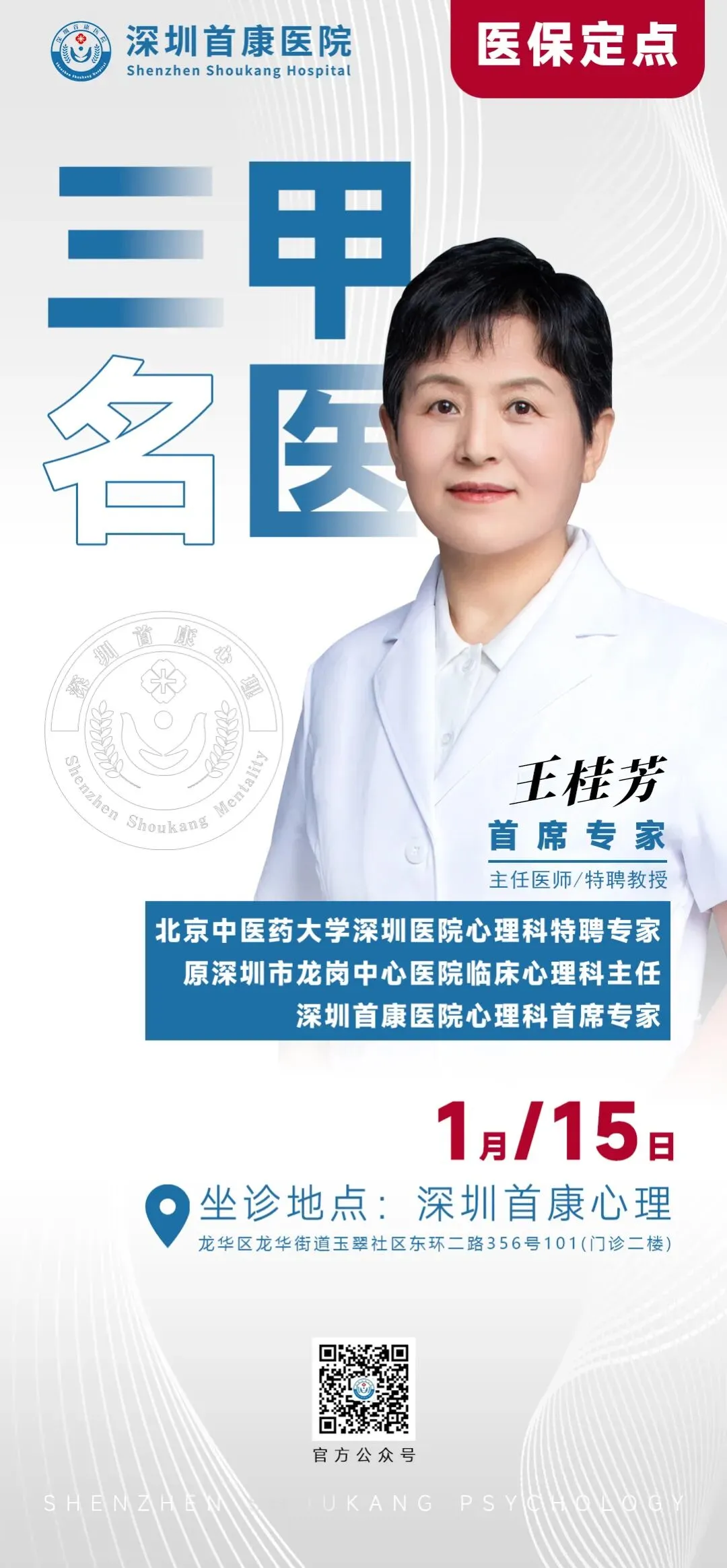 深圳首康心理科01月15日北京中医药大学深圳医院心理科特聘专家王桂芳主任和原河北医科大学第二医院心理科主任医师赖志盛主任出诊