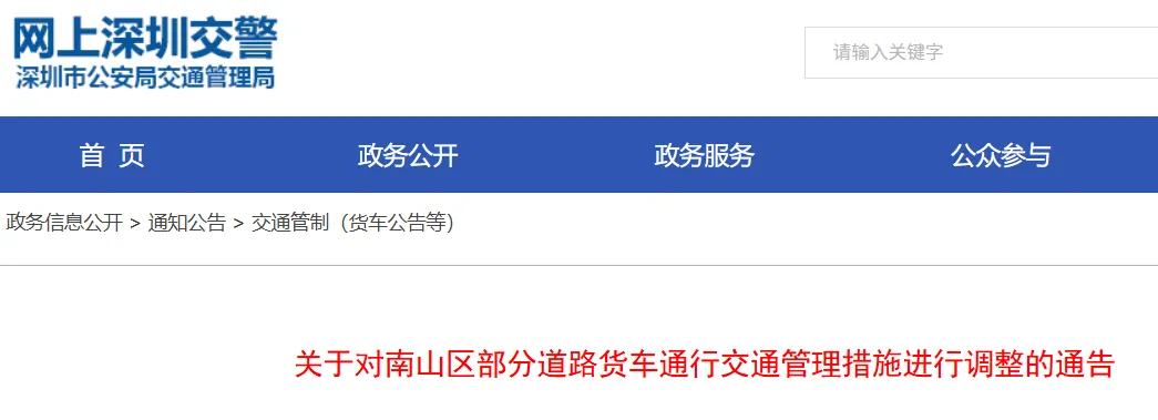 关于对南山区部分道路货车通行交通管理措施进行调整的通告