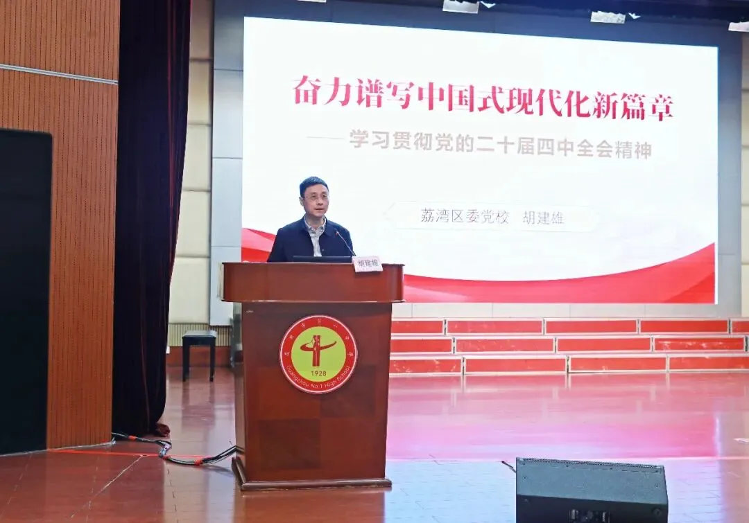 本次活动特别邀请荔湾区委党校胡建雄二级调研员莅临宣讲,集团核心校及所属成员校的500余名党员教师、教职工齐聚一堂,共赴这场思想盛宴,共话育人使命担当。