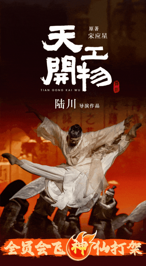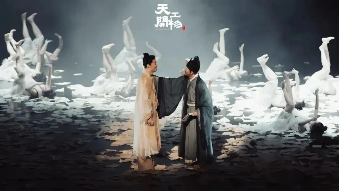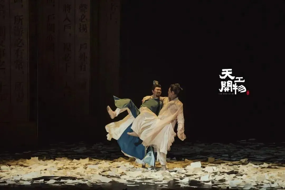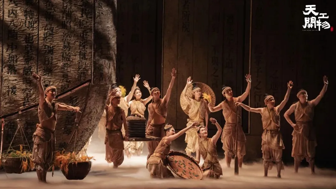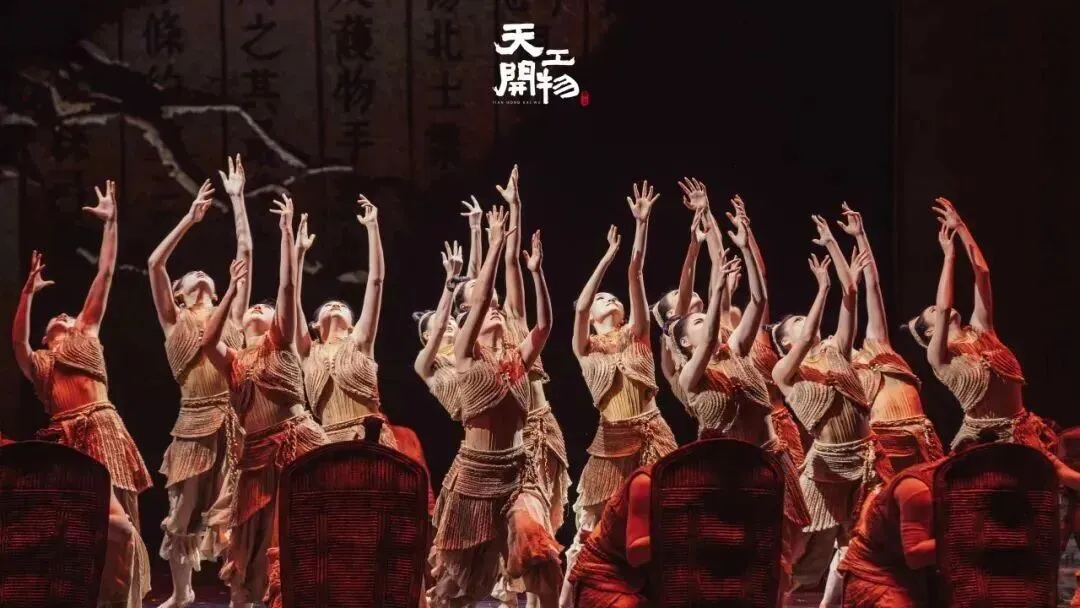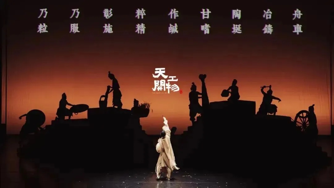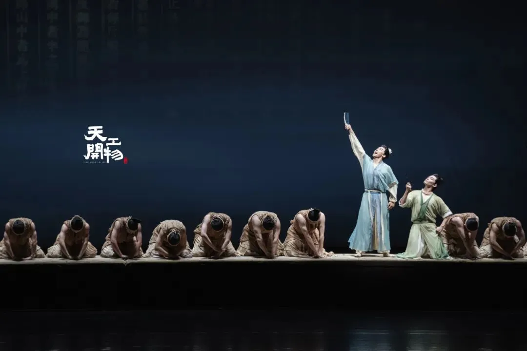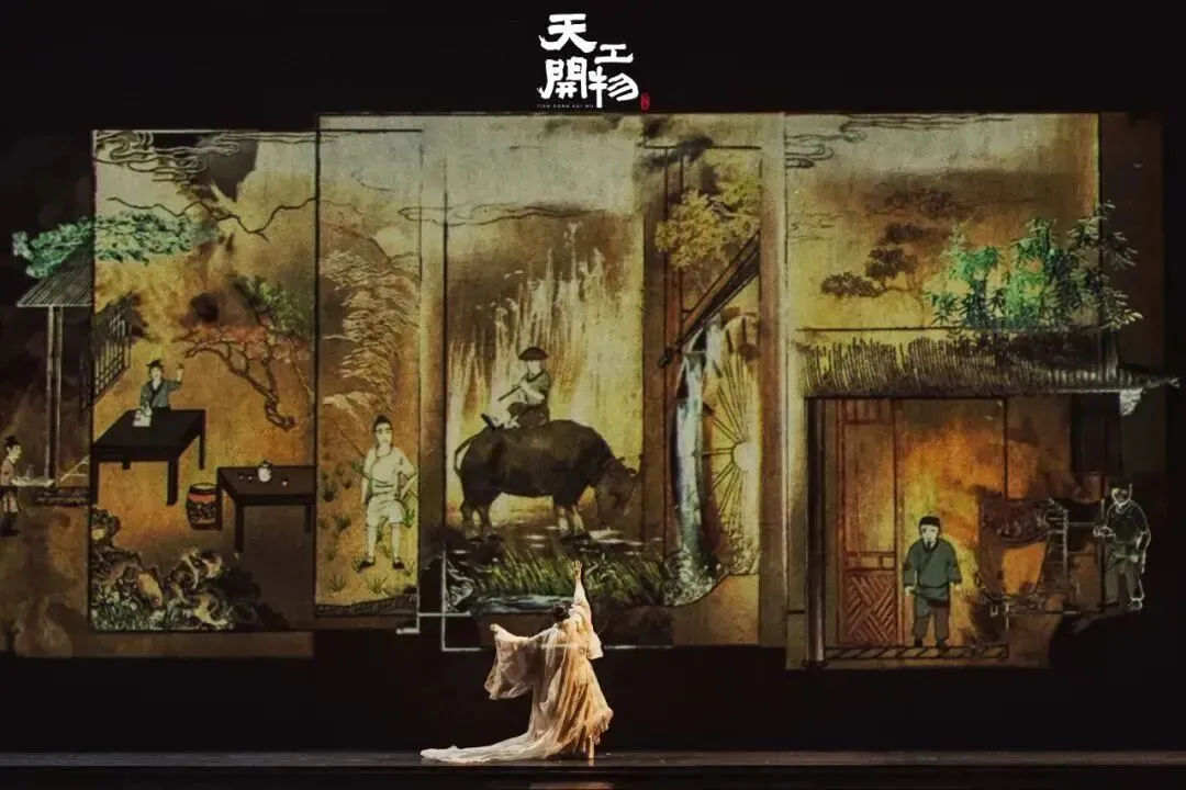 舞剧《天工开物》立足于舞蹈艺术规律,融合电影语言、影像、科技等元素,讴歌了工匠们的伟大劳动创造及璀璨的中华科技文明,展现了一幅绚美宏大的明朝科技历史画卷。