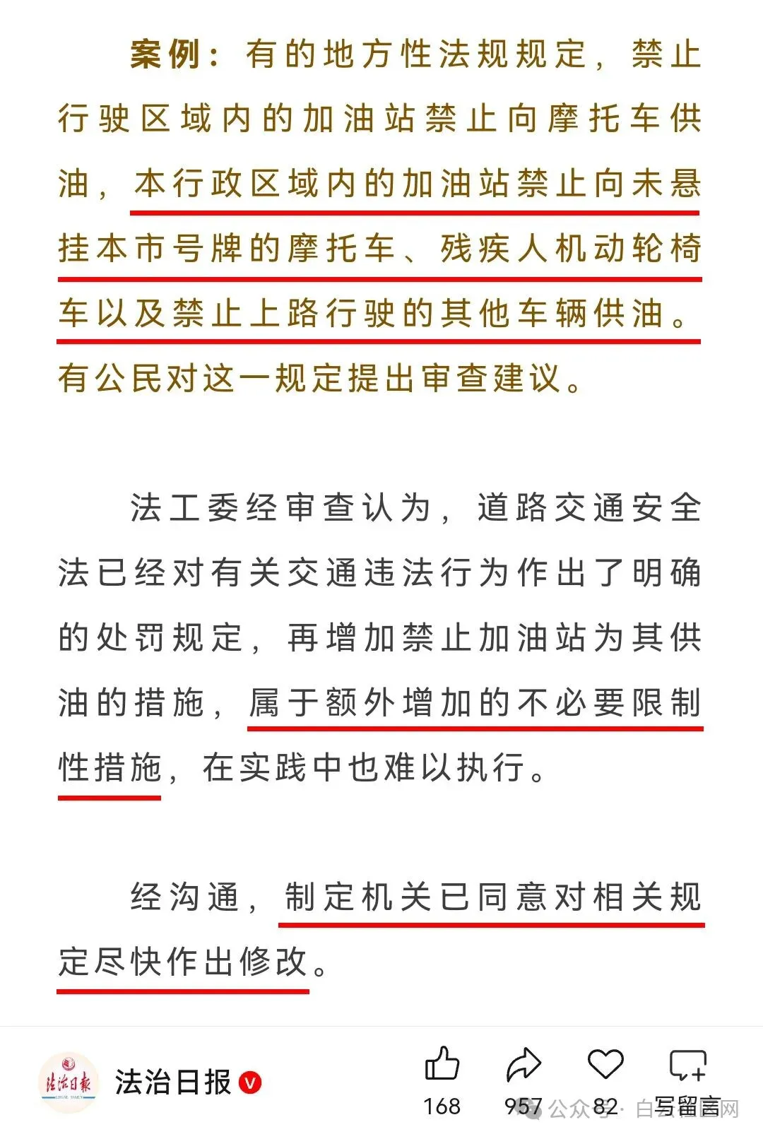 全国人大法工委明确加油站拒加外地摩托油