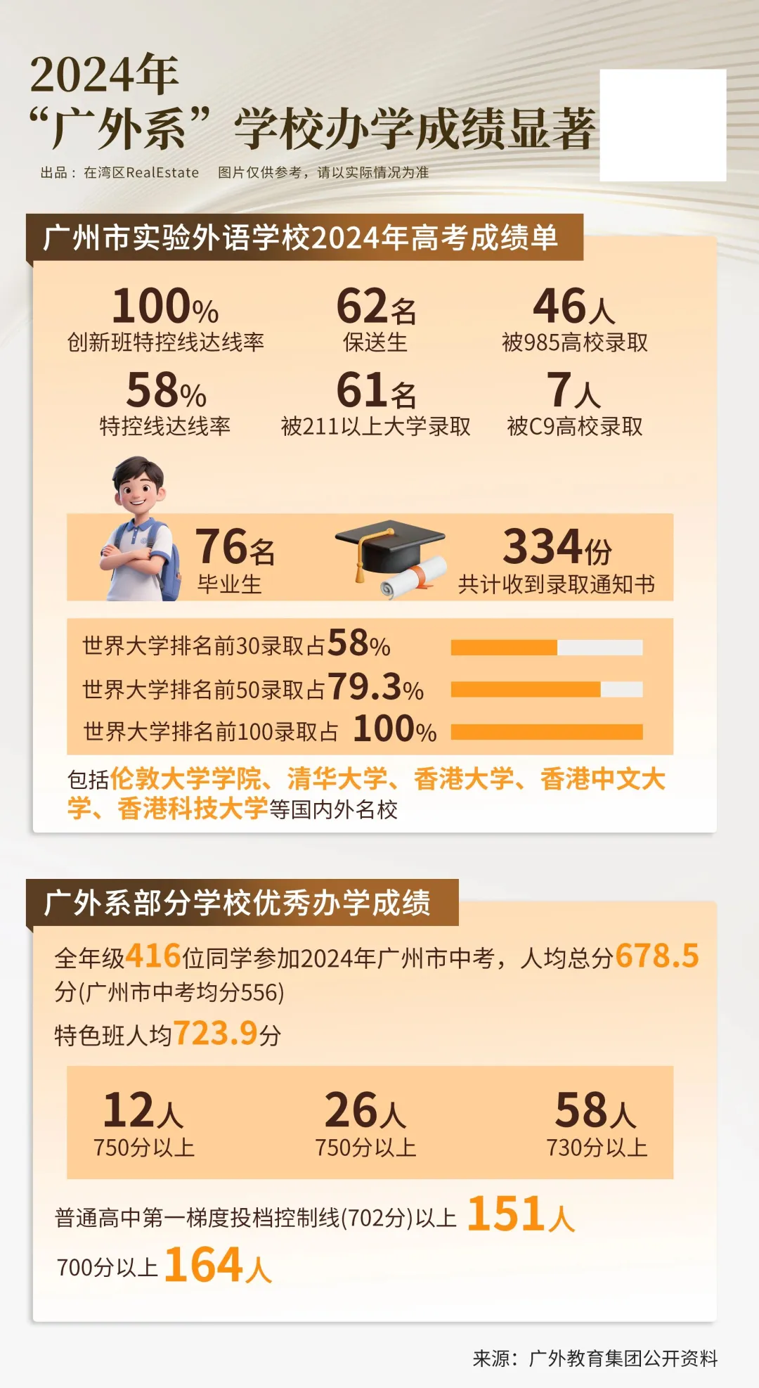 集团旗下的广州市实验外语学校(即广外外校),是全国首批13所具有保送资格的外语学校之一。广外外校官微数据显示,2022年广东清北等尖端高校保送的197人中,就有62人来自广外外校,独揽超30%的名额。