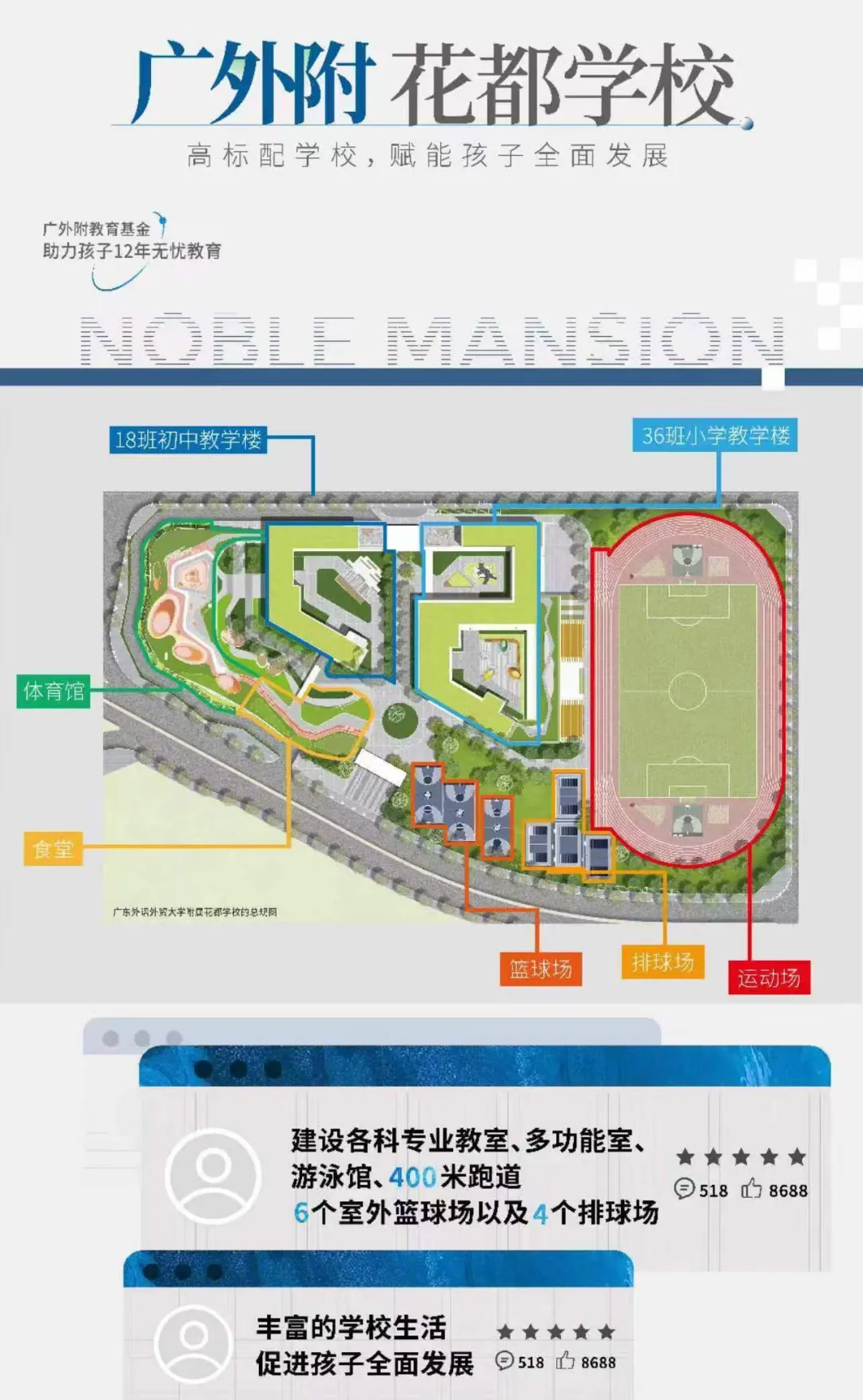 项目配建的广外附花都学校属于广州教育界三大巨头——广外教育集团。凭借高品质、国际化的办学方向和办学能力,以及先进的办学理念和制度化的办学体系有口皆碑。