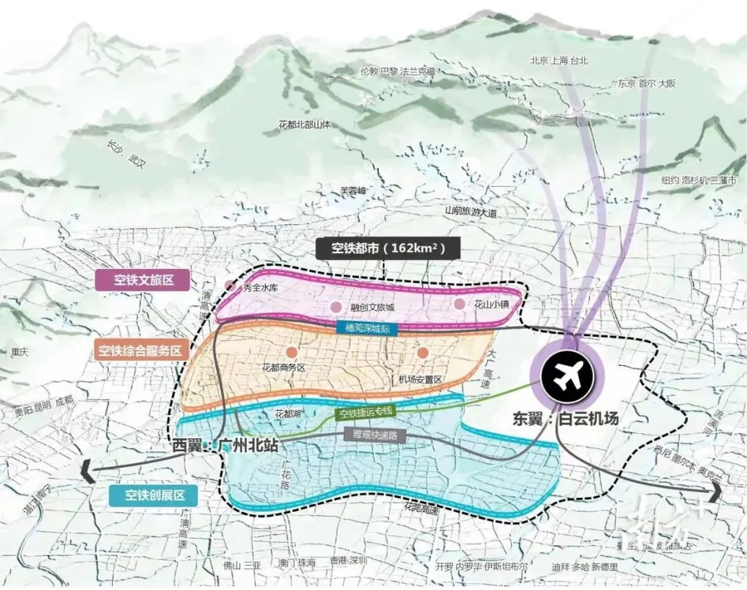 空铁新机遇,广州增长极在粤港澳大湾区《空铁金廊.枢纽客厅》发展规划和“智汇花都十条”人才政策、集中展示74个重点项目签约、84个落地项目动竣工的实况,总投资2000亿元!空铁大道连接北站和机场,目前已首段开通,这条路整体开通后使广州北站-白云机场交通时间由30分钟缩短至15分钟。