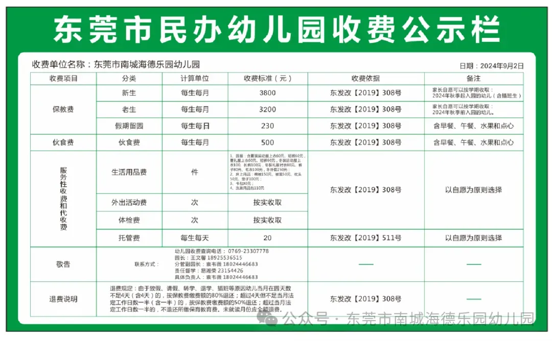 为了让大家更清楚地了解幼儿园收费标准,我园依据东莞市《关于加强学校教育收费公示管理工作的通知》的相关要求,特将收费标准公示如下: