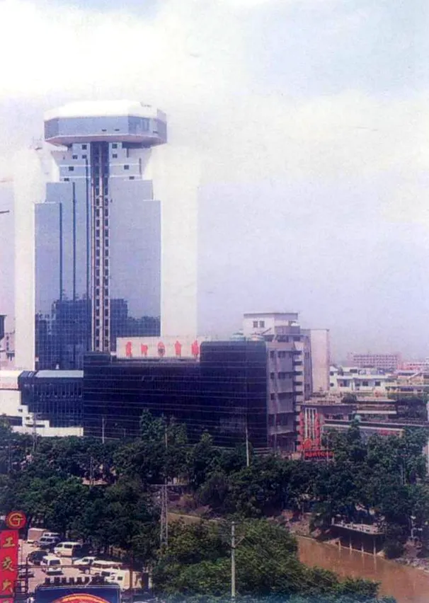 华侨大酒店建于1994年,1996年正式落成,主楼高99米,共28层,坐落于振华路与运河西二路交汇处,与西城楼、文化广场隔河相望,是当时东莞市中心区的地标建筑。1998年获评国家旅游局四星级酒店称号,作为东莞首家四星级酒店,其设施完备、服务高端,曾有“朝东方,晚华大”之说,深植于市民生活记忆。酒店于2005年8月停业。