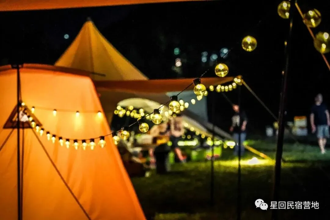 傍晚时分,露营区的烤架早已支起,烤肉的香气混着山野晚风四处飘散,三五好友围坐畅谈,烟火气十足。饭后泡进附近的温泉池,暖汤裹着身子,抬头便是渐暗的天色与点点星光,所有疲惫都烟消云散。