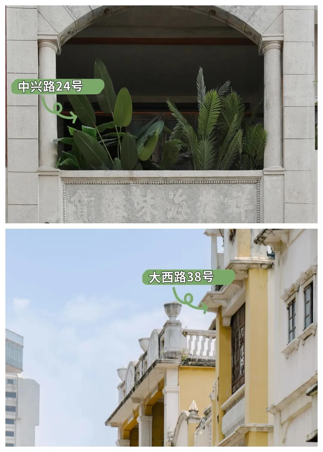 中兴路24号骑楼以哥特式垂直线条与彩色玻璃满洲窗相映成趣,灰塑“祥发”匾额历经百年依旧鲜明。