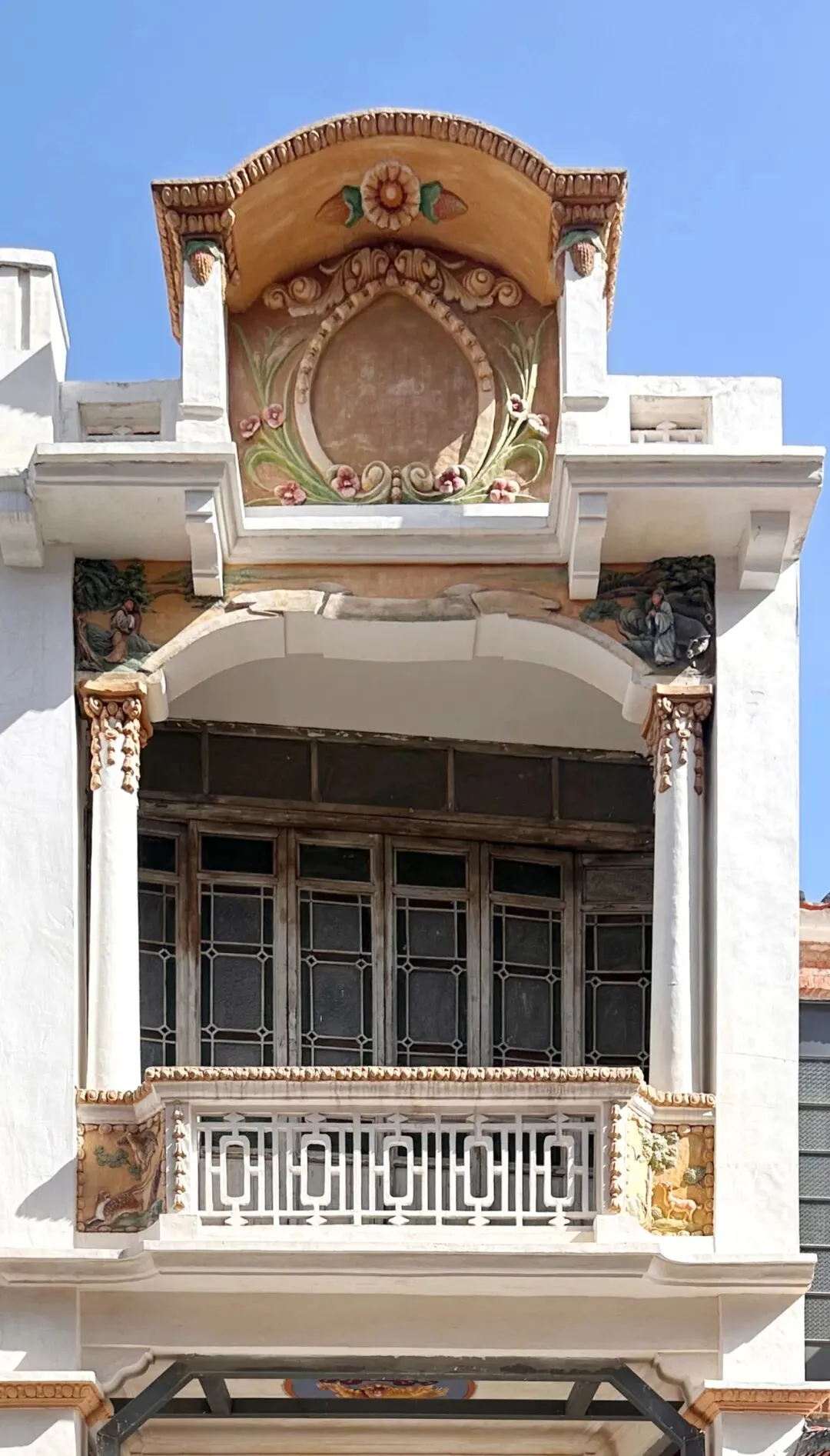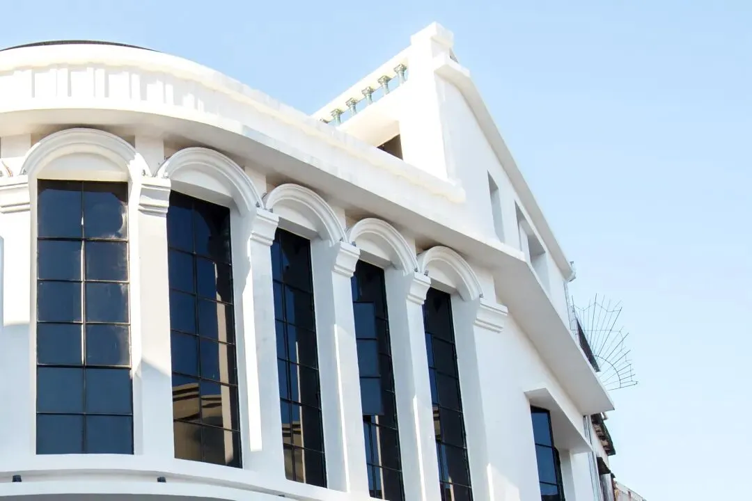 大西路1号骑楼二层窗洞的装饰,以连续廊柱与规整的弧形拱券为特色,罗马复合柱的线条兼具西式古典韵味与岭南建筑的实用考量,是骑楼拱劵设计的代表性实例。