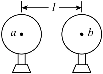 1. 如图所示,两个质量均为m的完全相同的金属球壳a与b,壳层的厚度和质量分布均匀,将它们分别固定于绝缘支座上,两球心间的距离为l,为球直径的2倍。若使它们带上等量异种电荷,两球所带的电荷量的绝对值均为Q,那么,a、b两球之间的万有引力F引、库仑力F库分别为( )