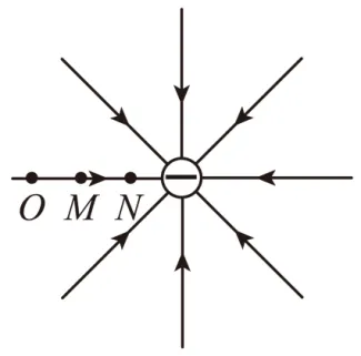 3. 如图所示,O、M、N为一负点电荷电场中一条电场线上的三点,M为ON的中点。O、N两点的电势分别为