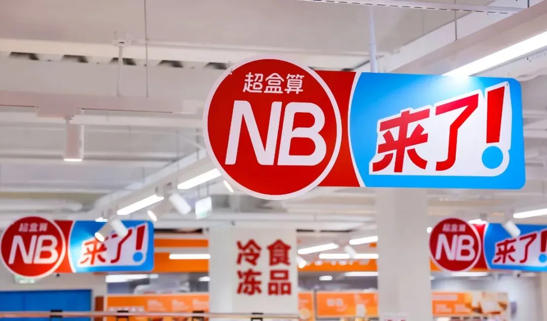 作为盒马旗下硬折扣标杆超市品牌,“超盒算NB”有着清晰的定位与特色。“超盒算”谐音“超合算”,直白传递“商品价格超级合算”的价值主张;“NB”则代表NeighborBusiness(邻里商业),聚焦务实家庭人群,深耕社区服务,精准匹配周边居民的日常生活需求。600~800平方米的门店虽小巧精致,却实现了“麻雀虽小、五脏俱全”的业态组合,相当于“升级版菜市+零食店+水果店+烘焙店”的四位一体全能小超市。