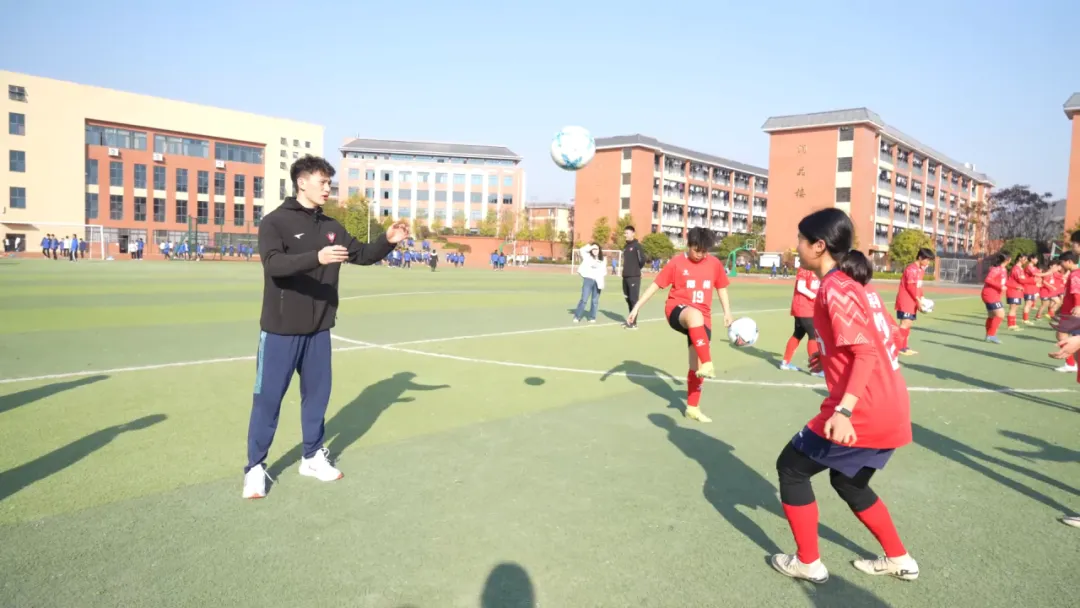 在备受期待的互动教学环节,铁狼俱乐部青训负责人陈建兴、队长黄涛与球员王博组成专业指导团队,聚焦嘉禾一中女足队员的训练需求,开展足球基础技能实操指导。针对队员们在传接球、战术配合、比赛心态等方面遇到的困惑,指导团队现场示范、逐一答疑,并提出针对性改进建议,助力女足队员们提升竞技水平。