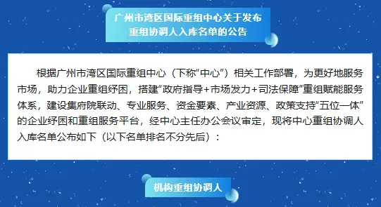 近日,广州市湾区国际重组中心(下称“中心”)正式发布《重组协调人入库名单》,植德深圳办公室凭借其在企业重组、债务纾困、破产重整等领域的深厚专业积淀与丰富项目经验,成功入选该重组协调人入库名单。未来,上海市台州商会常务副会长单位植德将有机会参与中心组织的各类重组协调项目,为企业提供全程法律支持与资源对接服务。