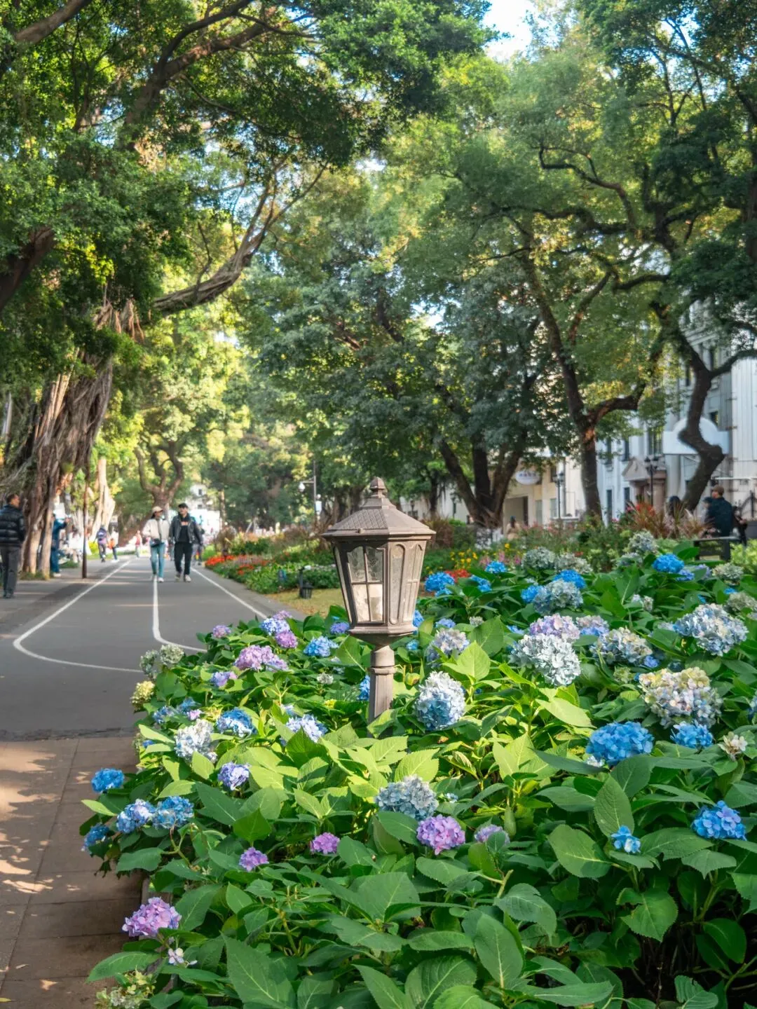 花坛两侧亦是繁花似锦