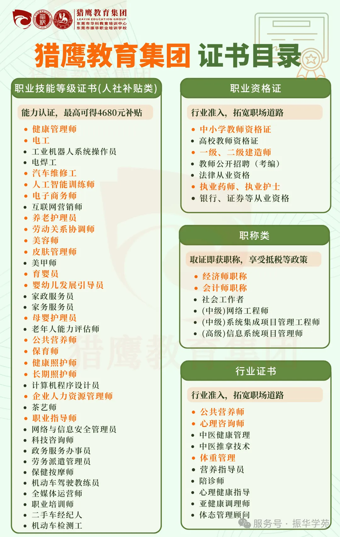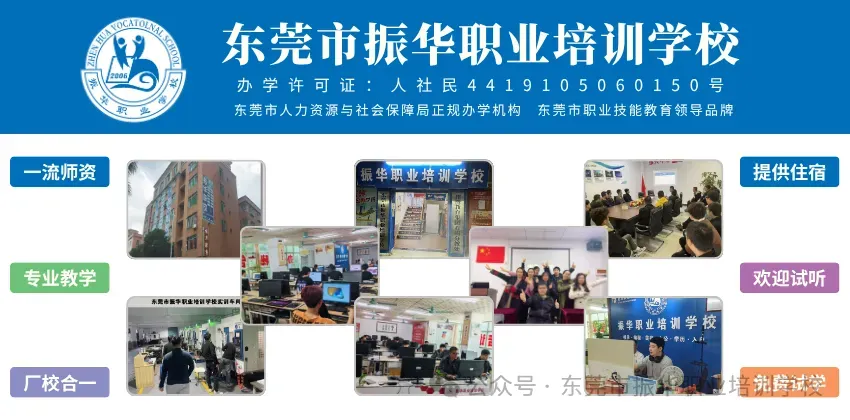 东莞市振华职业培训学校成立于2006年,是由东莞市人社局主管、东莞市民政局登记注册、猎鹰教育集团全资管理的正规职业技能培训学校,学校秉持“以服务求生存,以贡献谋发展”的经营宗旨,不断提升学校软硬件条件,创新“理论+实操+就业”三位一体教学培养模式,振华职校常年开设项目: