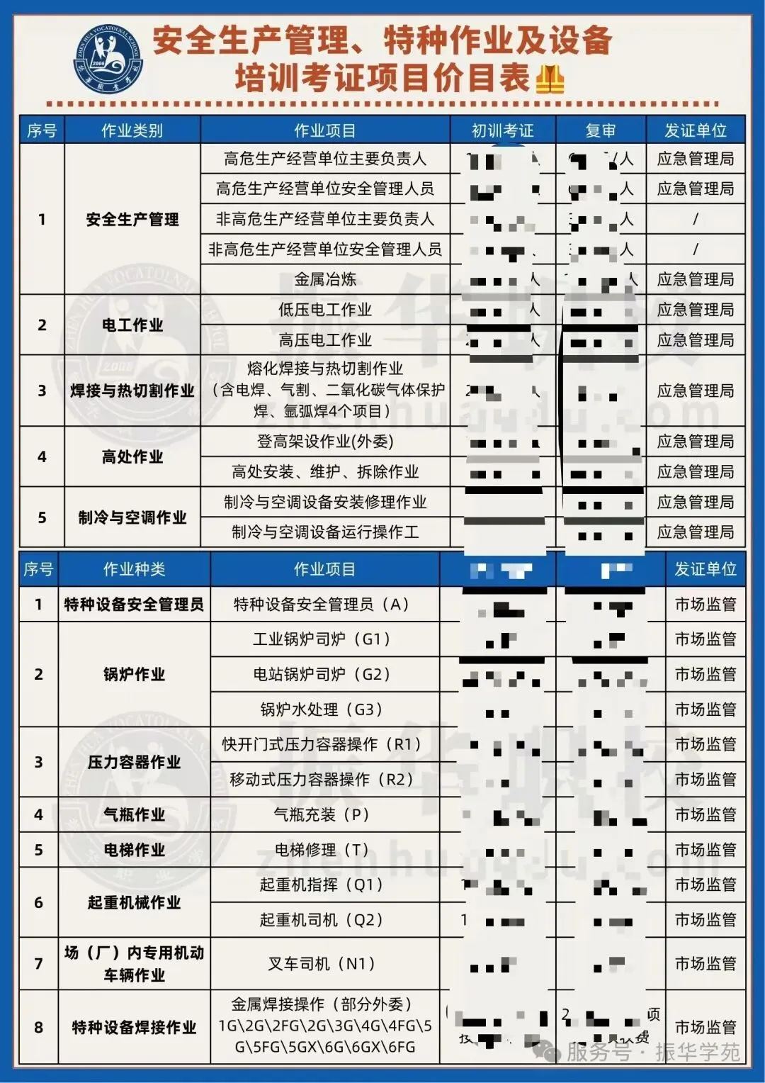 应急局:电工、焊工、高处作业、制冷等考证及复审换证