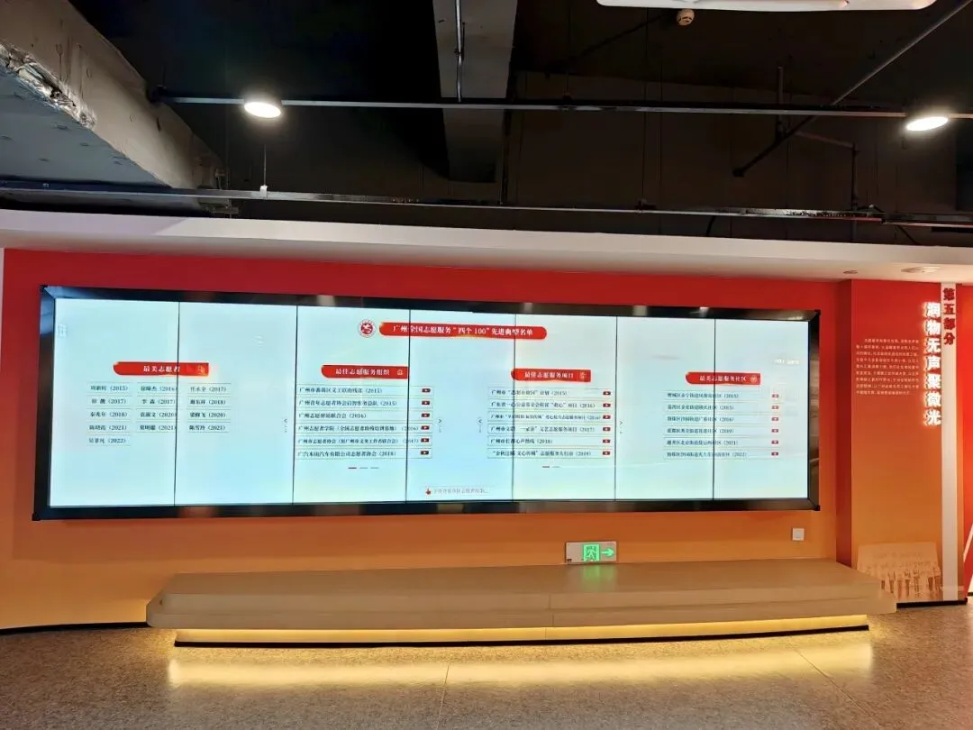 一块屏汇总广州市11个枢纽型志愿组织的核心服务项目,快速读懂广州志愿服务生态;另一块屏聚焦志愿榜样,全国学雷锋志愿服务“四个100”先进典型、各区优秀志愿者的事迹视频一键观看,指尖滑动间感受平凡人的不凡坚守,沉浸式汲取温暖力量。