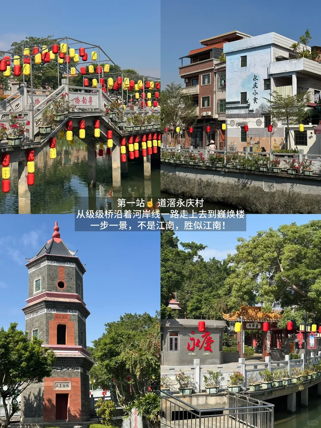 1️⃣早上先到厚德站,出站就是道滘永庆村。青石板路配着白墙黛瓦,满街都是岭南水乡的味道,慢悠悠晃一圈,随手拍都巨出片,完全不用刻意找角度!
