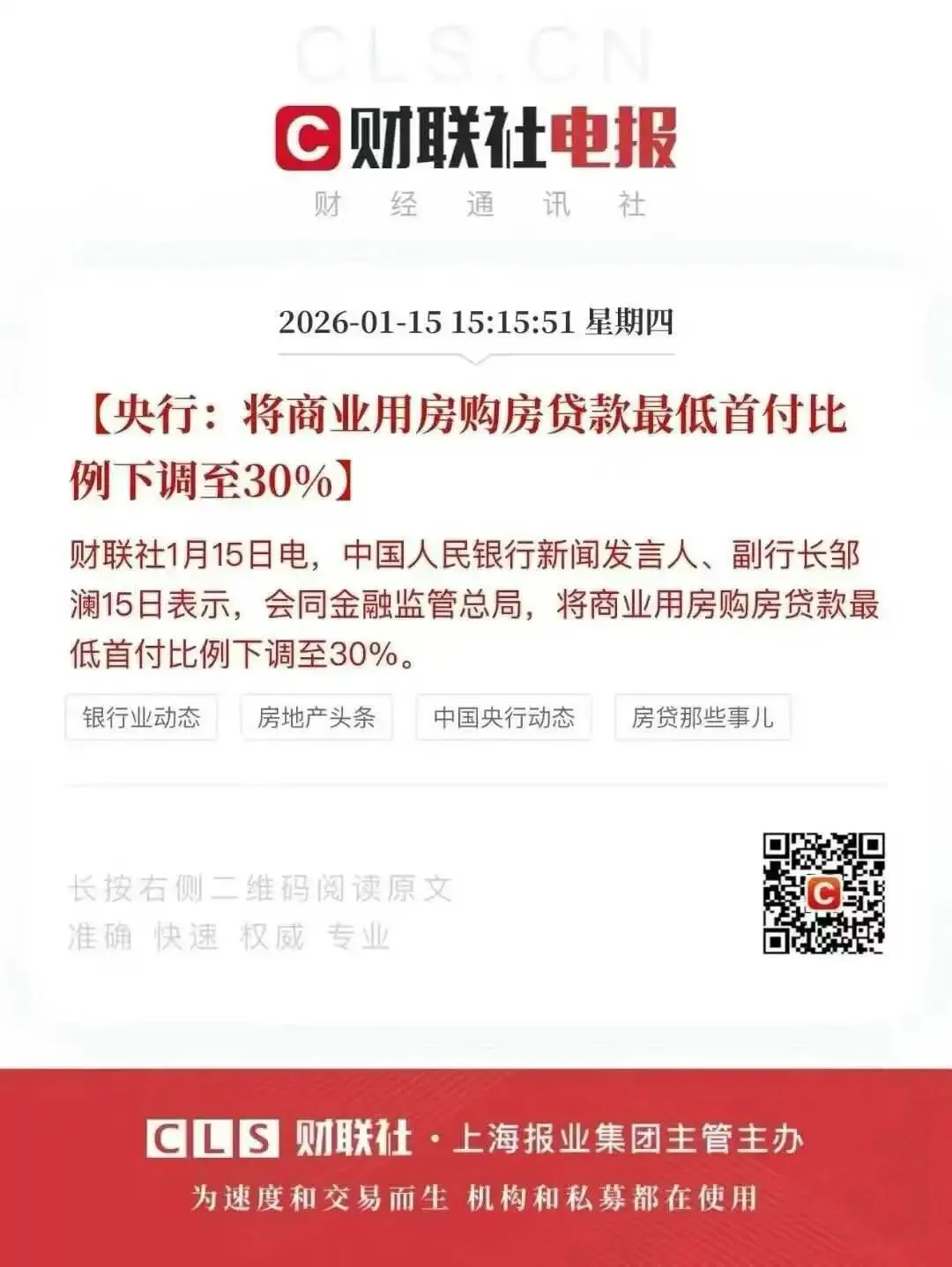 商业地产:首付比例降至30%,进一步激活投资需求;