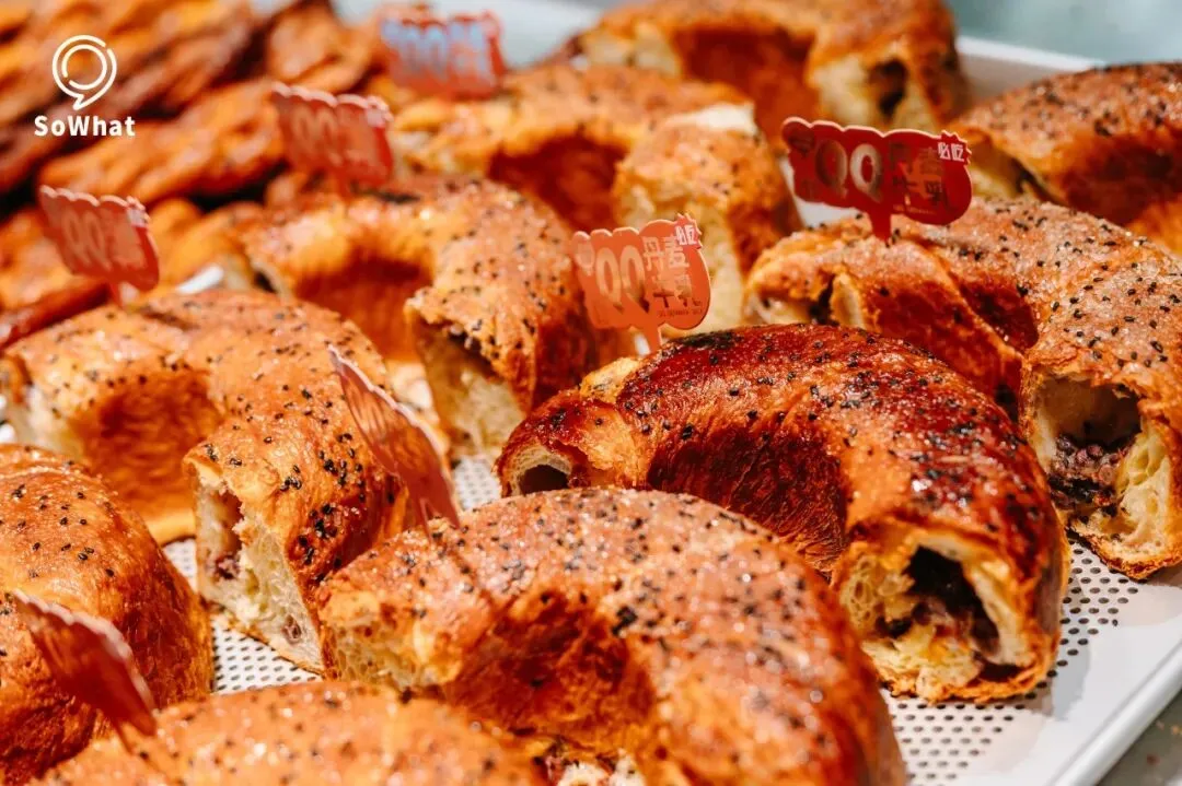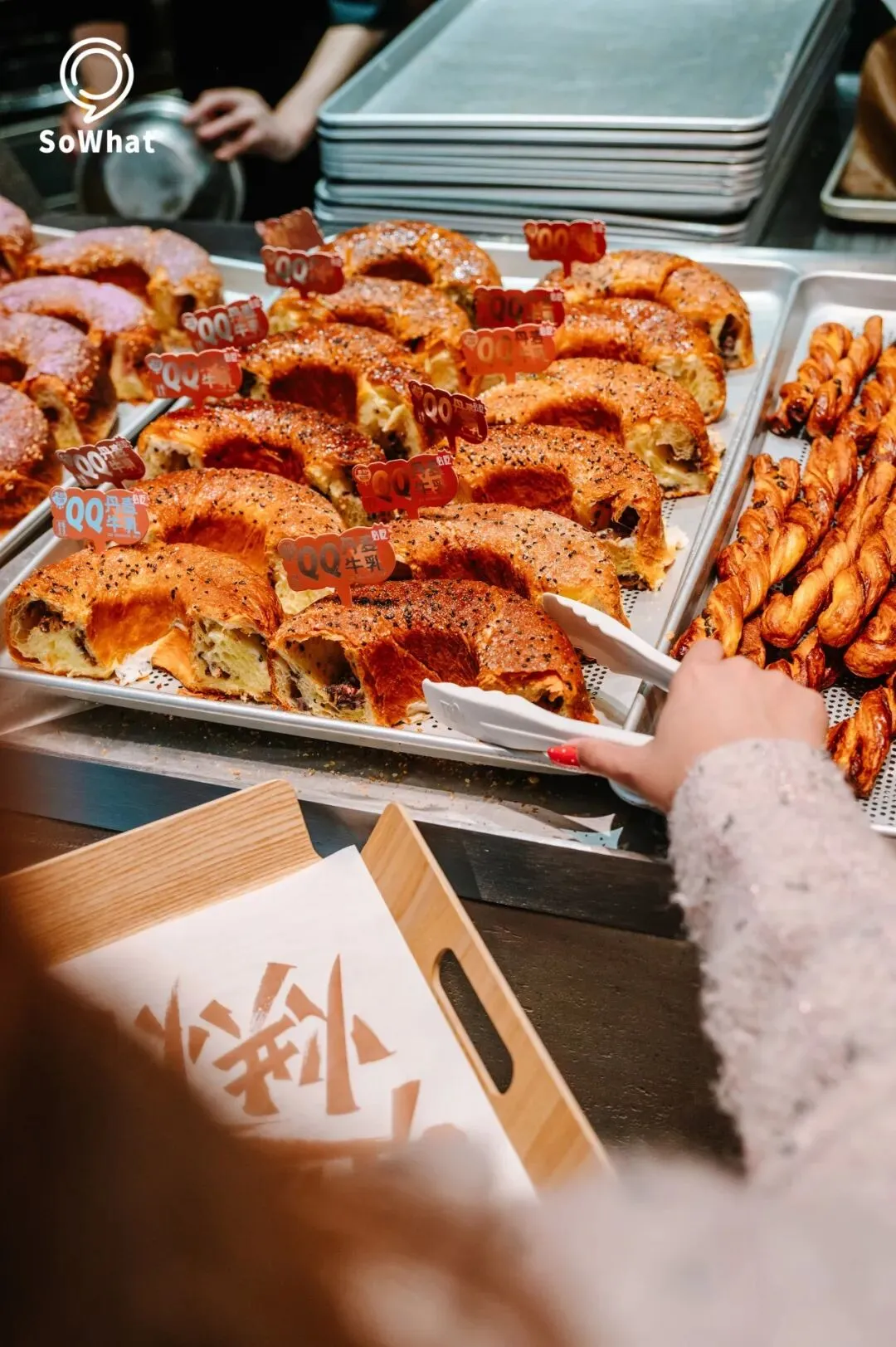 当然,如果觉得单喝茶饮不够尽兴,可以从街区走进商场L1层,到「卡玛王子·超级烘焙」配一份治愈下午茶点心!店铺新鲜出炉、现烤现卖,不知道买什么的话,直冲招牌QQ丹麦牛乳、开心果欧麦核桃准没错!