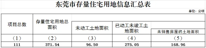 东莞最新存量住宅用地“清单”来了!目前全市共有111个存量住宅项目,总土地面积约 371.54公顷,相当于 500多个标准足球场大小。其中,已开工但还没完工的土地约占七成,尚未开工的占约四分之一。