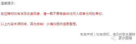 (声明:“累计招聘”微信公众号刊载此文,是出于传递更多信息之目的。若有来源标注错误或侵犯了您的合法权益,请及时与我们联系,我们将及时更正、删除或依法处理)