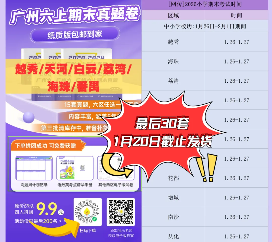 目前广州多个区都明确,期末考不统考,学校自行组织。