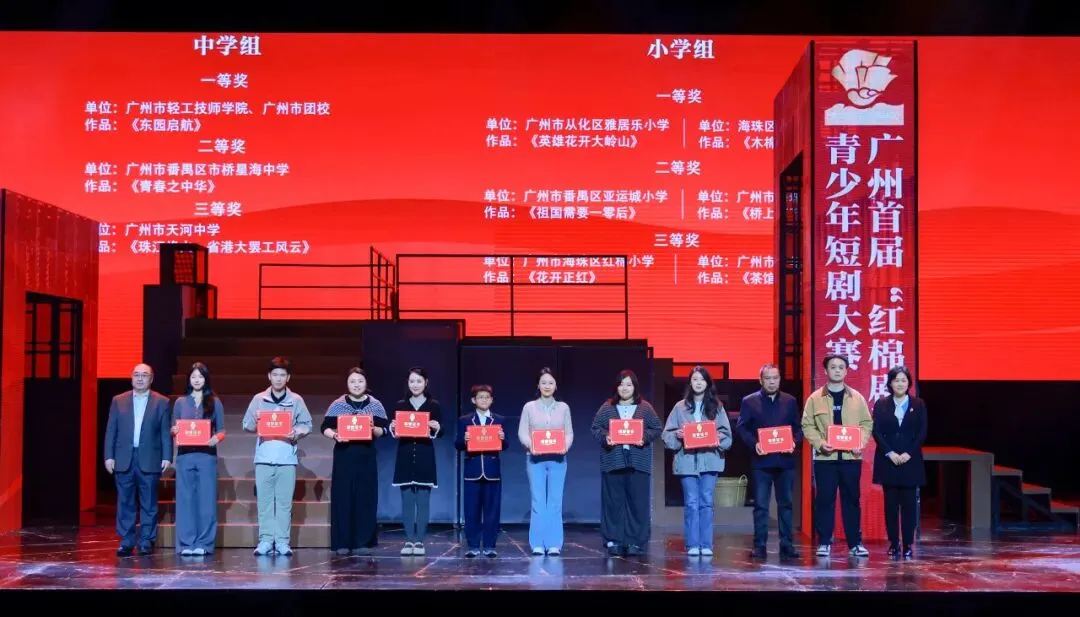 由中共广州市委宣传部、广州市教育局、广州市文化广电旅游局、共青团广州市委员会联合主办,广东省演出有限公司承办的广州“红棉剧说”青少年短剧大赛于2025开年启动首届赛事,吸引了全市近千名青少年广泛参与,通过“边赛边演”的独特赛程模式,将近40部入选作品,搬进各爱国主义教育基地、国防教育基地及广东音像689艺术空间等场所舞台比赛及展演,并于金秋时节在广东艺术剧院举行颁奖活动,迎来短剧孵化+人才培育+思政教育的多丰收,成为一个融合思政美育实践、传承红色文化基因、培养戏剧新生力量的综合性平台。